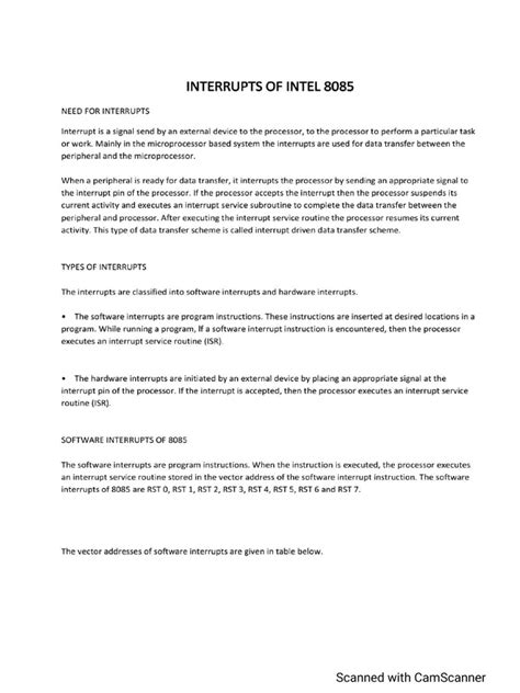 The INTR interrupt is often used in systems where multiple devices need to interrupt the processor. The external interrupt controller acts as a mediator, prioritizing the interrupt requests and providing the appropriate vector address to the 8085. This allows for a more scalable and manageable interrupt system . For instance, in a complex industrial control system, different sensors and actuators might be connected to the interrupt controller, each with its own priority and interrupt service routine. The interrupt controller ensures that the most critical interrupts are handled first, maintaining the overall stability and responsiveness of the system. Furthermore, the INTR interrupt can be dynamically configured, allowing you to change the interrupt priorities and vector addresses at runtime. This flexibility is particularly useful in applications where the system requirements might change over time.