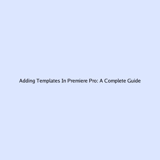 Adding Templates in Premiere Pro: A Complete Guide