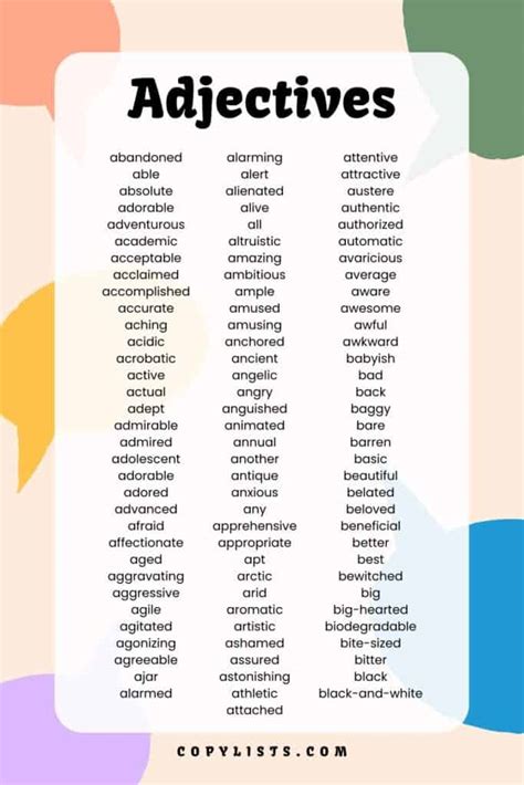 - Practice using them: The more you use these adjectives, the more comfortable you will become with them. Try incorporating them into your writing and conversations.