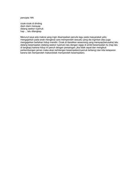 Cicak-cicak di dinding Diam-diam merayap Datang seekor nyamuk Hap! Lalu ditangkap!