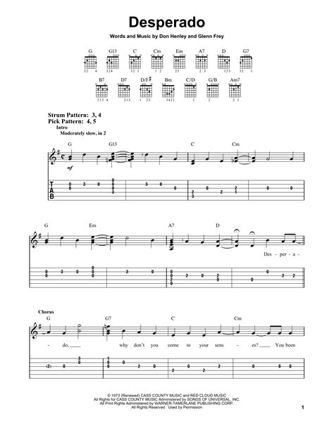 Okay, let’s talk about that iconic intro! The opening of “Desperado” is instantly recognizable and sets the tone for the entire song. Learning this riff from the Desperado guitar tabs is often the first major hurdle for many players, but trust me, it’s incredibly rewarding. The intro is primarily played on the higher strings, focusing on a melodic line rather than heavy strumming. You’ll usually see this section of the Desperado guitar tabs written out note by note. It often starts with a G chord shape, but played in a way that emphasizes specific notes. Pay close attention to the fret numbers and the strings indicated. For instance, you might see a sequence like playing the B string on the 3rd fret, then the high E string open, followed by the B string on the 1st fret. This kind of melodic phrasing is what makes the intro so hauntingly beautiful. When you’re practicing, try to play it slowly and evenly. The rhythm here is crucial. A metronome can be your best friend for nailing the timing. Many Desperado guitar tabs will include rhythmic notation, but if yours doesn’t, try listening closely to the original recording. You’ll notice a deliberate, almost hesitant pace that builds anticipation. Another element to focus on is the dynamics . The intro isn’t played at a constant volume. It often starts softly and gradually builds. This is where your touch comes into play. Try to vary the pressure you apply to the strings and the angle of your pick or fingers. Some tabs might suggest using a fingerpicking pattern for the intro, which can give it a more delicate sound. Others might show a gentle strumming approach. Experiment to see what sounds best to you and feels most comfortable. Once you nail this intro, you’ve pretty much conquered the most distinctive part of the song, and that’s a huge win! It’s the perfect hook to draw listeners in, and playing it yourself feels absolutely awesome. So, dedicate some extra time to this part of the Desperado guitar tabs ; it’s worth every minute!