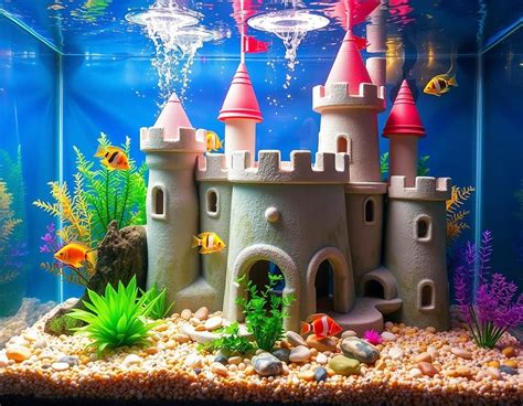 Now for the fun part – adding the details! This is where you can really personalize your aquarium castle and make it stand out. Use smaller rocks, gravel, and sand to add texture and visual interest to the walls and towers. Glue these elements to the castle using silicone. Consider adding some artificial plants to the castle. These can add a pop of color and provide additional hiding places for your fish. Choose plants that are safe for aquarium use and won’t leach any harmful chemicals into the water. You can also add some small, aquarium-safe decorations, such as miniature statues or treasure chests. Just make sure these are securely attached to the castle and won’t pose a hazard to your fish. Think about the overall theme of your aquarium. Do you want your castle to look ancient and weathered, or more pristine and well-maintained? Use different colors and textures to achieve the desired effect. Don’t overdo it with the decorations. A few well-placed details can be more effective than a cluttered and chaotic design. Remember, the goal is to create a natural and inviting environment for your fish. A well-decorated castle will not only enhance the aesthetic appeal of your aquarium but also provide your fish with a stimulating and enriching habitat.