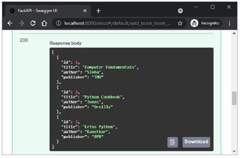 Open your browser and navigate to http://127.0.0.1:8000/docs . You’ll see the interactive API documentation generated by FastAPI (thanks to Pydantic!). Here, you can test your API endpoints.