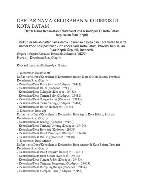 - Cara Mencari Kode Pos Kopkar PLN Batam Center yang Akurat