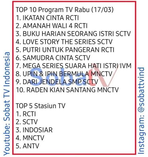 Guys, biar nggak ketinggalan keseruan dan nggak bingung mau nonton apa, ada beberapa trik nih buat kamu yang mau nemuin program TV Indonesia dengan rating tertinggi yang sesuai sama selera kamu. Pertama, jangan malas buat browsing dan cek tangga rating. Banyak situs berita hiburan atau akun media sosial yang rutin ngeluarin daftar program TV terpopuler tiap minggunya. Ini semacam peta harta karun buat kamu yang mau cari tontonan hits . Perhatikan juga stasiun TV mana yang paling sering menayangkan program-program unggulan. Biasanya, stasiun TV besar punya beberapa program andalan yang memang udah diprediksi bakal laris manis. Kedua, manfaatkan rekomendasi dari teman atau media sosial . Kadang, teman kita punya selera yang sama, atau postingan di media sosial bisa ngasih clue tentang acara apa yang lagi banyak dibicarain orang. Coba deh scroll timeline kamu, siapa tahu ada rekomendasi menarik yang muncul. Kalau ada teman yang bilang “Nonton ini deh, seru banget!”, langsung aja dicatet! Ketiga, perhatikan genre favoritmu . Kalau kamu suka banget sama drama percintaan, cari sinetron-sinetron yang lagi naik daun di genre itu. Kalau kamu suka ketawa ngakak, fokus aja cari acara komedi yang lagi on fire . Nggak perlu maksa nonton acara yang nggak kamu suka cuma karena lagi rating tinggi, nanti malah nggak menikmati. Keempat, jangan ragu untuk mencoba episode pertama . Banyak program TV yang awalnya mungkin kelihatan biasa aja, tapi episode-episode selanjutnya justru makin seru. Jadi, kasih kesempatan dulu di awal. Kalau dalam satu atau dua episode kamu merasa nggak nyambung, ya nggak apa-apa, langsung ganti aja. Tapi kalau nyantol, wah, siap-siap nemu tontonan favorit baru! Kelima, cek juga ulasan atau *review *. Kadang, ada kritikus atau penonton lain yang ngasih ulasan tentang sebuah program. Ini bisa jadi pertimbangan tambahan buat kamu. Tapi ingat, selera orang beda-beda, jadi ulasan itu cuma sebagai referensi aja ya. Keenam, pertimbangkan jam tayang . Program dengan rating tertinggi seringkali tayang di jam-jam strategis, kayak prime time malam hari. Kalau kamu punya waktu luang di jam-jam tersebut, coba deh pantengin stasiun TV yang lagi banyak ngeluarin program bagus. Terakhir, yang paling penting, nikmati prosesnya ! Mencari tontonan yang pas itu juga bagian dari me time lho. Jadi, santai aja dan jangan terlalu overthink . Dengan beberapa tips ini, kamu pasti bisa nemuin program TV Indonesia rating tertinggi yang bikin hari-harimu makin berwarna. Selamat berburu tontonan seru, guys!
