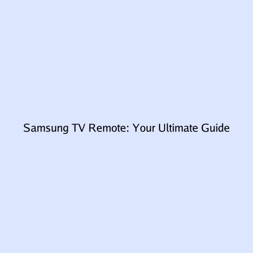 Samsung TV Remote: Your Ultimate Guide