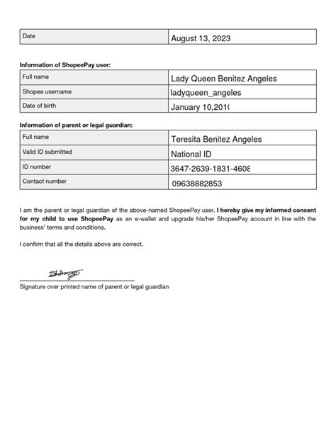 ShopeePay, like other financial platforms, has to comply with regulations regarding minors and their financial activities. This form serves as a safeguard , ensuring that any actions taken on a minor’s account are done with proper parental or guardian consent. By requiring this form, ShopeePay can verify that the minor has permission to use the platform and make transactions. This is crucial for protecting minors from potential fraud or misuse of their accounts.