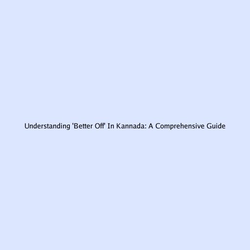 Understanding ‘Better Off’ in Kannada: A Comprehensive Guide