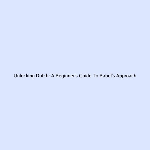 Unlocking Dutch: A Beginner's Guide To Babel's Approach