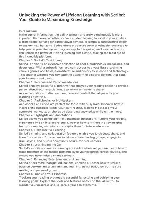 Scribd also allows you to adjust the brightness of your screen. This is particularly useful if you’re reading in low-light conditions. You can also bookmark pages, highlight text, and add notes – all great features for keeping track of your thoughts and making the most of your reading experience. Highlighting key quotes or passages is a simple way to remember important information and makes it easier to look back on important plot points.