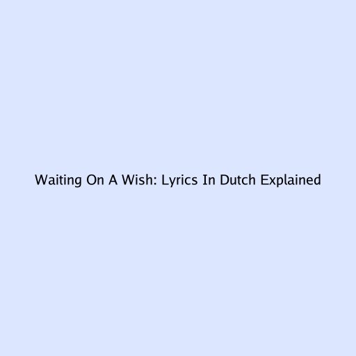 Waiting On A Wish: Lyrics In Dutch Explained