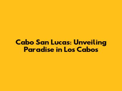 Cabo San Lucas: Unveiling Paradise In Los Cabos