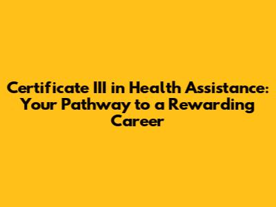 Hey guys! Thinking about a career where you can genuinely make a difference in people's lives? Well, let's dive into the Certificate III in Health Assistance. This qualification is your golden ticket to entering the vibrant and essential healthcare sector. It’s designed for folks who want to provide direct care and support to patients in various healthcare settings, from hospitals and aged care facilities to community health services. If you’ve got a compassionate heart and a desire to help others, this course could be exactly what you’re looking for to kickstart a fulfilling career. We're talking about gaining the practical skills and knowledge needed to assist nurses and other healthcare professionals, ensuring patients receive the best possible care. It’s a hands-on qualification that prepares you for real-world challenges in a dynamic environment. You'll learn about patient well-being, communication techniques, infection control, and a whole lot more, all while working towards a qualification that’s highly respected in the industry. So, buckle up, because we're about to explore why this certificate is such a fantastic stepping stone.