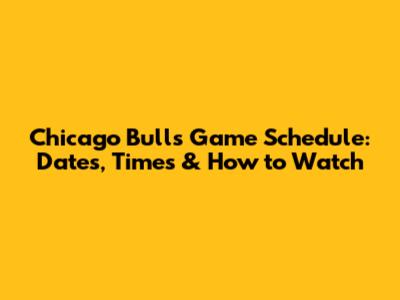 Chicago Bulls Game Schedule: Dates, Times & How To Watch