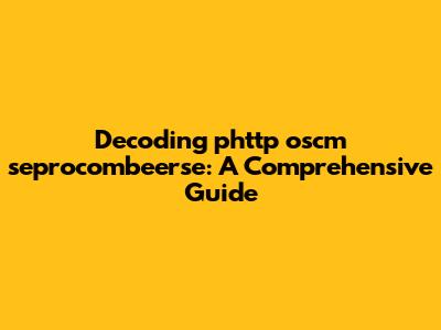 Decoding Phttp Oscm Seprocombeerse: A Comprehensive Guide