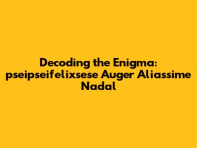 In the vast digital landscape, we often encounter strange and enigmatic strings of characters. While some may be meaningless, others might hold hidden meanings or personal significance. The phrase "pseipseifelixsese Auger Aliassime Nadal" serves as a reminder that even seemingly random combinations can spark curiosity and invite us to explore the unknown. Whether it's a corrupted search query, a coded message, or simply a unique identifier, this string offers a glimpse into the fascinating world of online communication and the endless possibilities of human expression. So, next time you encounter a similar enigma, don't be afraid to delve deeper and see what secrets you can uncover. After all, the internet is full of mysteries waiting to be solved!