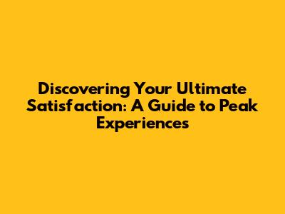 Discovering Your Ultimate Satisfaction: A Guide To Peak Experiences
