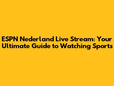 ESPN Nederland Live Stream: Your Ultimate Guide