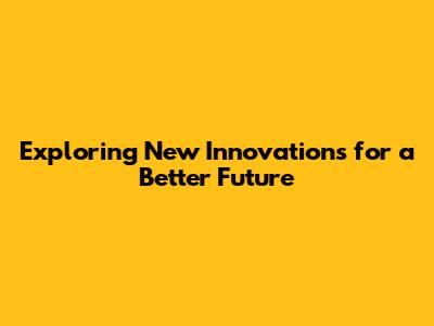 Exploring New Innovations For A Better Future
