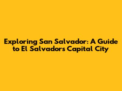 Exploring San Salvador: A Guide To El Salvador's Capital City