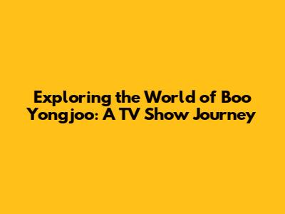 Exploring The World Of Boo Yongjoo: A TV Show Journey