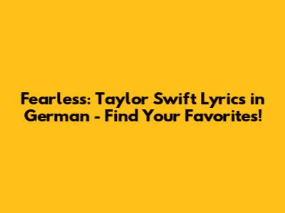 Fearless: Taylor Swift Lyrics In German - Find Your Favorites!