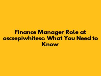 Finance Manager Role At Oscsepiwhitesc: What You Need To Know