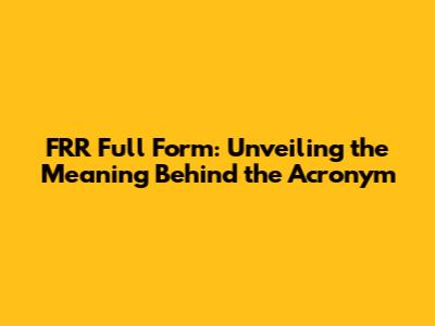 FRR Full Form: Unveiling The Meaning Behind The Acronym