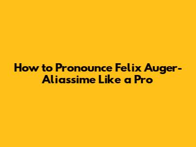 How To Pronounce Felix Auger-Aliassime Like A Pro