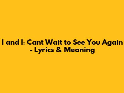I And I: Can't Wait To See You Again - Lyrics & Meaning