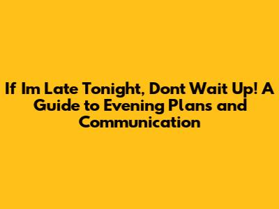 If I'm Late Tonight, Don't Wait Up!