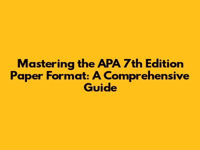 Mastering The APA 7th Edition Paper Format: A Comprehensive Guide