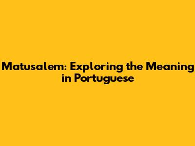 Matusalem: Exploring The Meaning In Portuguese