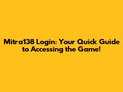 Mitra138 Login: Your Quick Guide To Accessing The Game!