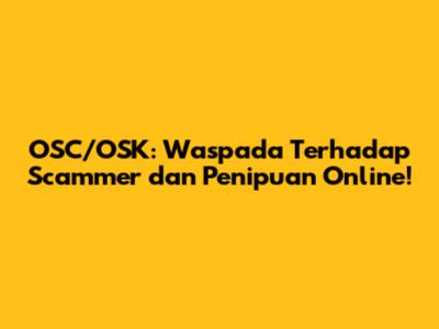 OSC/OSK: Waspada Terhadap Scammer Dan Penipuan Online!