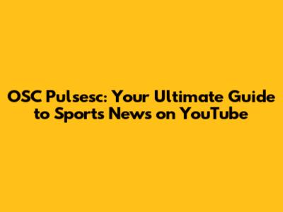 OSC Pulsesc: Your Ultimate Guide To Sports News On YouTube