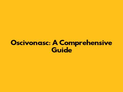 Oscivonasc: A Comprehensive Guide