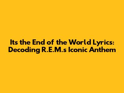 Hey guys! Let's dive deep into one of R.E.M.'s most recognizable and electrifying hits: "It's the End of the World as We Know It (And I Feel Fine)." This song isn't just a catchy tune; it's a lyrical whirlwind packed with historical references, cultural anxieties, and a healthy dose of apocalyptic humor. So, buckle up as we unravel the layers of meaning behind these iconic lyrics.