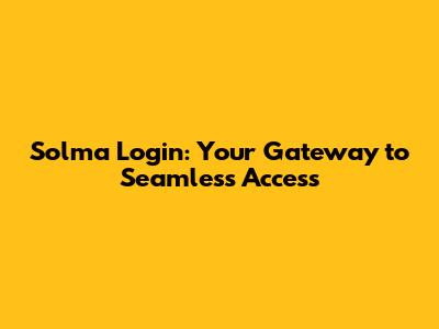 Solma Login: Your Gateway To Seamless Access