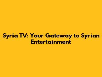 Syria TV: Your Gateway To Syrian Entertainment