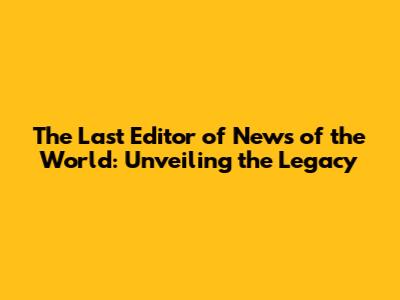 The Last Editor Of News Of The World: A Deep Dive