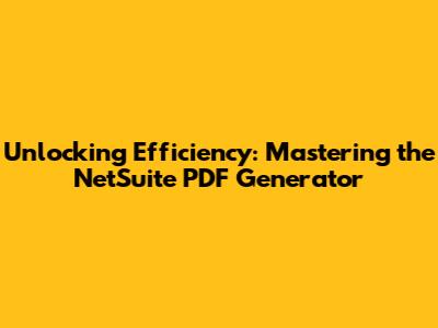 Hey guys! Ever feel like you're drowning in a sea of documents? Well, if you're a NetSuite user, you're in luck! Because today, we're diving deep into the NetSuite PDF Generator, a super powerful tool that can seriously streamline your document management game. From invoices to reports, the PDF generator is your secret weapon for creating professional-looking, easily shareable documents directly from your NetSuite data. Think of it as your digital document butler, taking care of all the formatting and presentation details so you can focus on what really matters: your business.