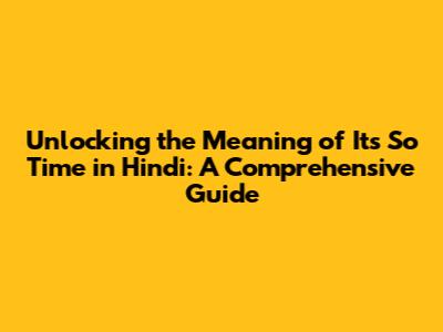 Unlocking 'It's So Time' Meaning In Hindi: A Comprehensive Guide