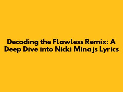 Hey music lovers! Ever gotten completely lost in the whirlwind of a Nicki Minaj track? If you're anything like me, you've probably spent hours dissecting her lyrics, trying to catch every single word, every clever rhyme, and every iconic ad-lib. Today, we're diving deep into the Flawless Remix, a track that's basically a masterclass in lyrical prowess. We're talking about the Flawless Remix lyrics! This isn't just a song, guys; it's an experience. Get ready to have your minds blown as we break down the brilliance of Nicki Minaj on this track, exploring the clever wordplay, the cultural references, and the overall impact of her contribution. Buckle up, because we're about to go on a lyrical adventure!