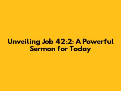 Unveiling Job 42:2: A Powerful Sermon For Today
