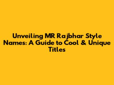 Unveiling MR Rajbhar Style Names: A Guide To Cool & Unique Titles