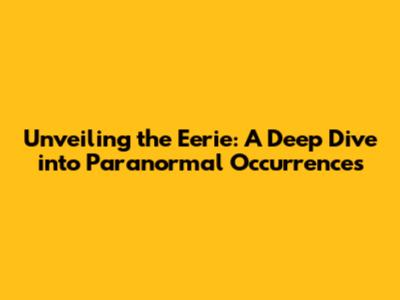 Unveiling The Eerie: A Deep Dive Into Paranormal Occurrences