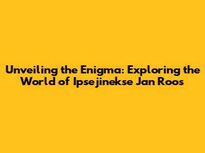 What Exactly is Ipsejinekse Jan Roos? A Deep Dive