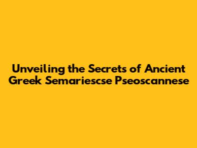 Unveiling The Secrets Of Ancient Greek Semariescse Pseoscannese